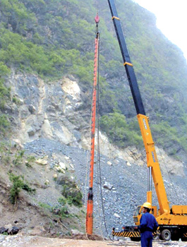 振沖器是振沖法施工中的特制機(jī)具。它產(chǎn)生水平向振動(dòng)力振擠填料及周圍土體,而達(dá)到提高地基承載能力、減少沉降量、增加地基穩(wěn)定性、提高抗地震液化能力。 振沖法施工時(shí)除原地沖器外,尚需行走式起吊裝置,泵送輸水系統(tǒng),控制操作臺等。如工程單位缺乏起重機(jī),本廠還供應(yīng)振沖器施工樁架,樁架有單邊滾管立柱式、液壓步履式、簡易履帶式等。